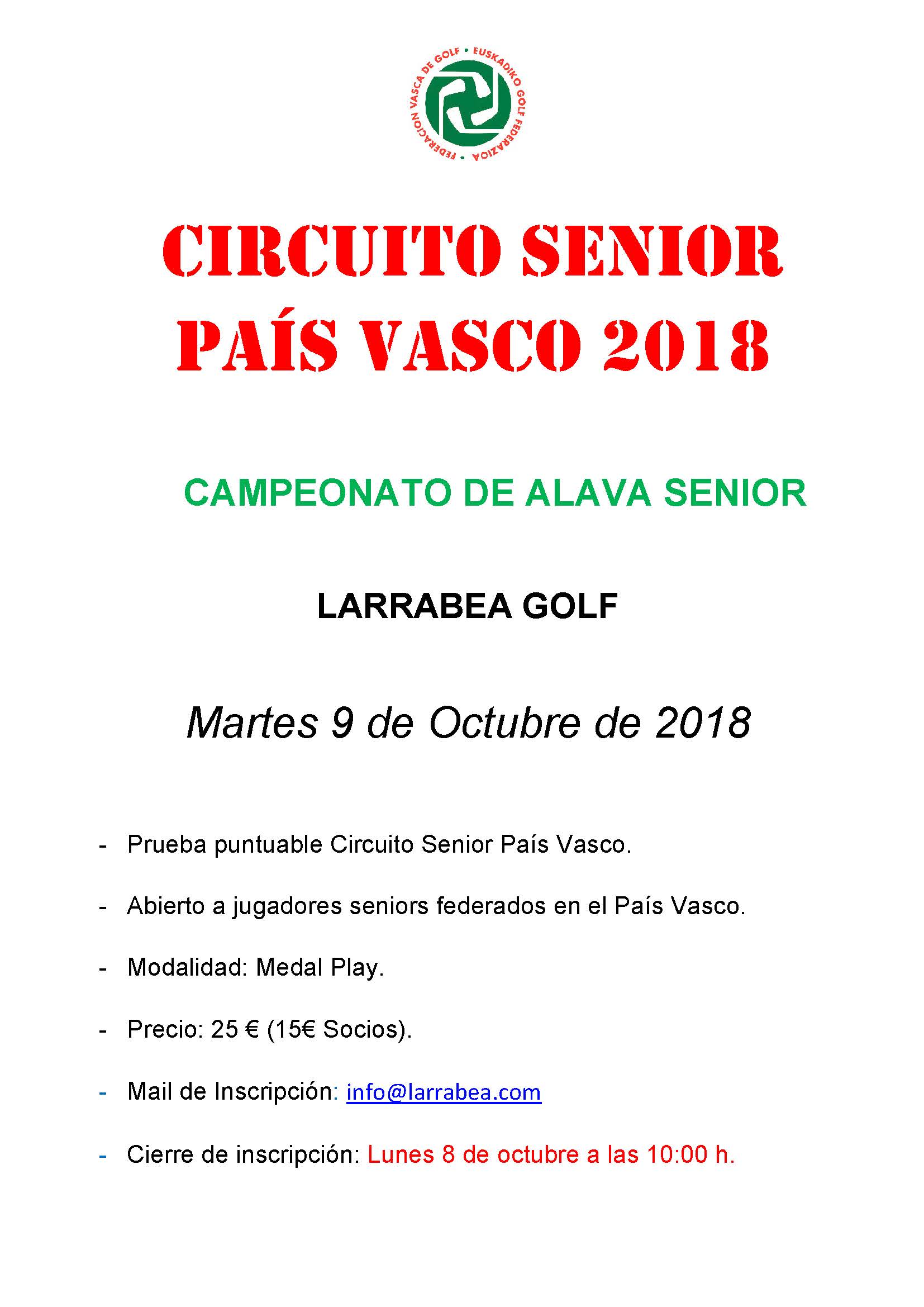 Se disputa en Larrabea Golf el próximo 9 de Octubre